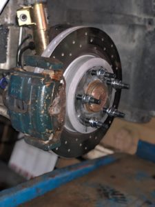 Vervolgens hebben wij wieltapeinden geplaatst, dit om een wielenwissel makkelijker en sneller te maken. Wij moeten dit gewoon met de krik doen en zitten dus op onze kniën als we wielen moeten wisselen. Eerst moesten wij met de wielbouten zoeken naar een gat om de wielen te bevestigen, dat kan soms best lastig zijn als je niet veel kracht kunt zetten zo laag bij de grond. Het gebruik van wieltapeinden maakt dit een stuk makkelijker omdat je het wiel gewoon over de tapeinden kunt schuiven.