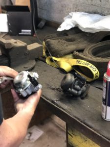 Deze moesten dus opnieuw vervangen worden. Hiervoor moesten de remklauwen volledig gedemonteerd worden.