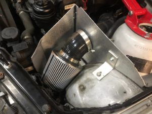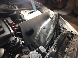 Verder hebben wij onze luchtinlaat een beetje veranderd. Dit hebben wij gedaan d.m.v. een mistlamp in de bumper te demonteren en deze te vervangen voor een luchtinlaat. Hierachter hebben wij een flexibele neonpreen slang gemonteerd die naar boven wordt geleid, uitkomend in onze nieuwe zelf gemaakte luchtfilterbak. Hierin hebben wij een open luchtfilter in gemonteerd.