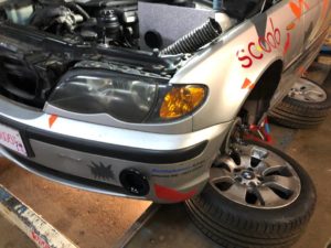 De laatste keer dat wij in november gereden hebben, hadden wij opgemerkt dat er een geluid vanuit de achterkant van de auto vandaan kwam. Het leek op een differentieel lager. Alleen bij het controleren hiervan duidden wij op de aandrijfassen die inwendig speling vertoonden. Deze hebben wij vervangen. Ook hebben wij gekeken voor een differentieel met een kortere overbrengingsverhouding. Wat accelereren uitkomend in een bocht sneller maakt. Omdat ons eigen differentieel grotere flensen bevat, moesten wij deze wisselen met de flensen op het nieuwe differentieel.