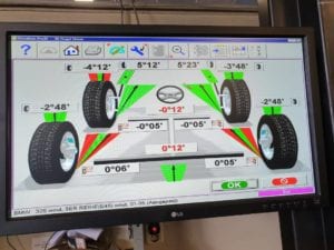 Nadat wij dit allemaal gemonteerd en afgesteld hadden, moesten wij de auto nog uitlijnen. Ook hadden wij de auto aan de voorzijde nog iets omhoog geschroefd omdat de auto net teveel in een duik raakte tijdens het inremmen en aan liep in de wielkasten.