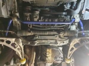 Na dat het Subframe verstevigd is, hebben wij op advies van Thijssen Motorsport verstelbare camber -en stabilisatorstangen geplaatst.
