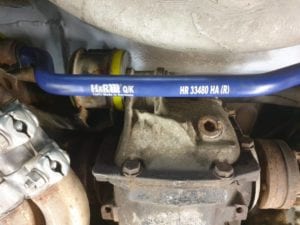Ook hebben wij verstelbare stabilisator stangen van H&R gemonteerd die het overhellen van de auto in bochten tegen zal gaan. Wij hadden namelijk de laatste Trackday in Assen gemerkt dat de auto dat erg deed.