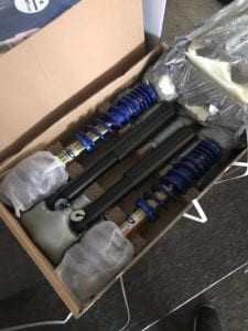 Toen werd het tijd voor het onderstel aan te pakken. We zijn voor een degelijke AP-Racing schroefset gegaan. Hiermee wordt de auto verlaagd en het rijgedrag aangepast. De rijhoogte is d.m.v. het schroefgedeelte altijd in hoogte aan te passen.De auto voelt sportiever aan, stuurt scherper in en is een stuk stugger. Dat is juist wat je wilt hebben op het circuit.