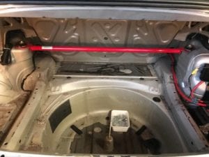 Het eerste wat wij aan de auto gedaan hadden was het interieur leeghalen. Alles wat niet noodzakelijk voor op het circuit is, eruit! Denk aan bijvoorbeeld de achterbank, stoffen bekleding, isolatiemateriaal, etc…